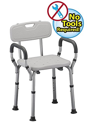 -. Feature : SHOWER, SIT& RELAX - The MDS shower chair allows individuals, seniors or those with limited mobility or injury to sit during shower. Create a relaxing shower experience; allowing fall risk individuals to shower independently / PORTABLE & LIGHTWEIGHT - Weighs just 6lbs (without back support) and 8lbs (with back support). Comes with padded armrests which allows you to easily lift or move the chair / PROVIDES SECURITY AND DURABLITY - Our newest shower chair is made with heavy-duty anodized aluminum frame, and weight capacity of 300lbs! / DELUXE COMFORT: High-density, anti-bacterial polyethylene seat & padded armrests brings increased comfort and needed support for users / FULLY ADJUSTABLE & EASY TO USE- The back support is removable, and includes padded armrests! Height adjustable legs allow users to customize chair based on specific preferences. TOOL FREE EASY ASSEMBLY!