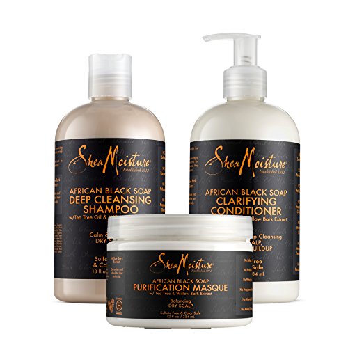 SheaMoistureAfrican Black Soap Hair Care Pack | 13 fl. oz. Deep cleansing Shampoo | 13 fl. Oz. Balancing Conditioner | 4 oz. Purification Masque