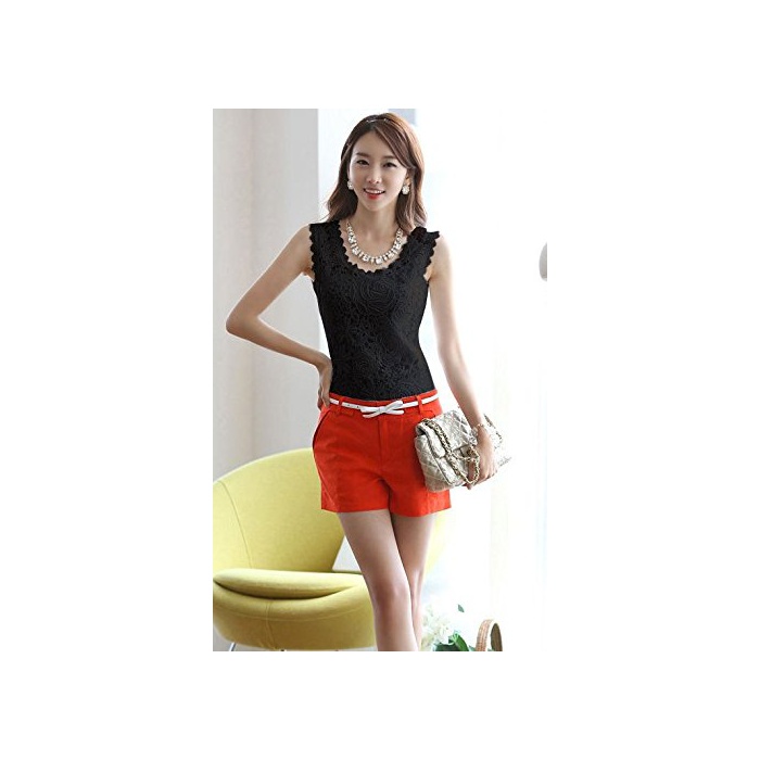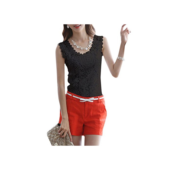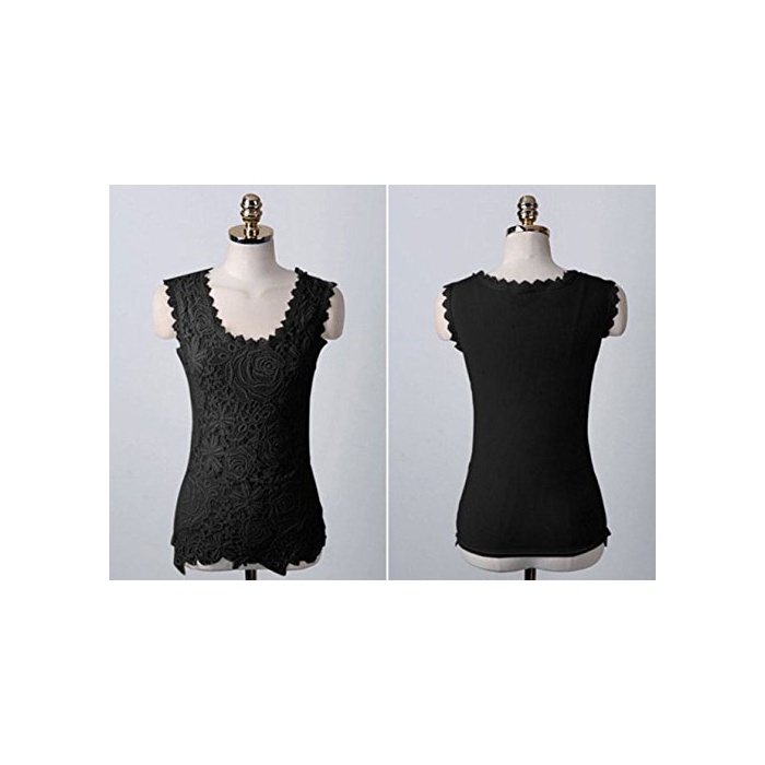 Strawberry&Banana 꽃무늬 모티브 레이스 노슬리브 블라우스 탱크 탑 엘레강트(elegant)