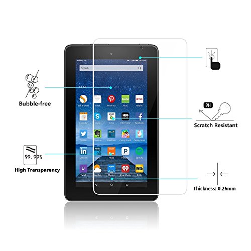 -. Binding : Electronics -. Brand : NEARPOW -. Color : Clear -. Feature : 0.26mm tempered glass screen protector designed for Fire 7 ONLY, perfect cut and fit for your tablet's screen, 2.5D round edge provides more comfortable handle feeling than the right angle edge, and will never hurt your fingers / Fire 7-inch screen protector one-push super easily installation: Precise laser cut tempered glass made with polished, rounded edges, automatically attach to the screen smoothly, hassle-free and bubble-free. No residue when removed, can repeatable installation / Featuring maximum protection: 99.99% HD Clarity and Touchscreen Accuracy, Oleophobic screen coating magically resists oils and reduces annoying fingerprints, against dirt and dust. Explosion-proof 9H Hardness Scratch-resistant screen protector can effectively protect your Amazon Fire 7 from unwanted scuffs and scratches by knife, keys and some other hard substances / Lifetime no-hassle warranty provides easy lifetime protection for your Fire 7" tempered glass screen protector / Online video tutorials and detailed Instructions on how to correctly install your Fire 7 screen protector -. Label : NEARPOW -. Manufacturer : NEARPOW -. Model : NP-FIRE7 -. MPN : NP-FIRE7 -. PackageQuantity : 1 -. PartNumber : NP-FIRE7 -. ProductGroup : PC Accessory -. ProductTypeName : COMPUTER_ADD_ON -. Publisher : NEARPOW -. Studio : NEARPOW -. Title : Fire 7" 2015 Screen Protector, Nearpow Tempered Glass Screen Protector for New Fire 7 inch (2015 Released) [9H Hardness] [Crystal Clear] [Easy Bubble-Free Installation] [Scratch Resist]