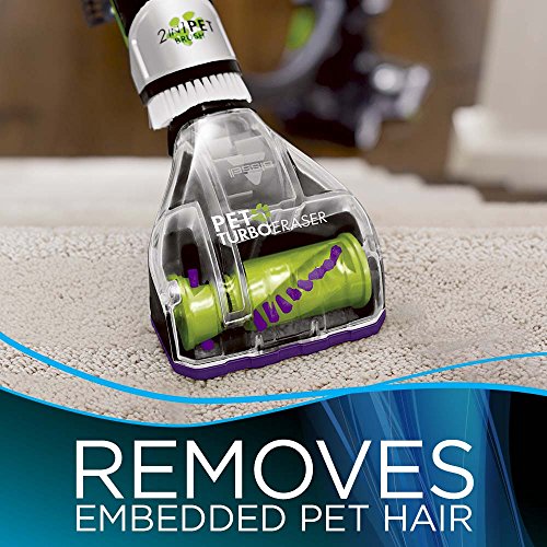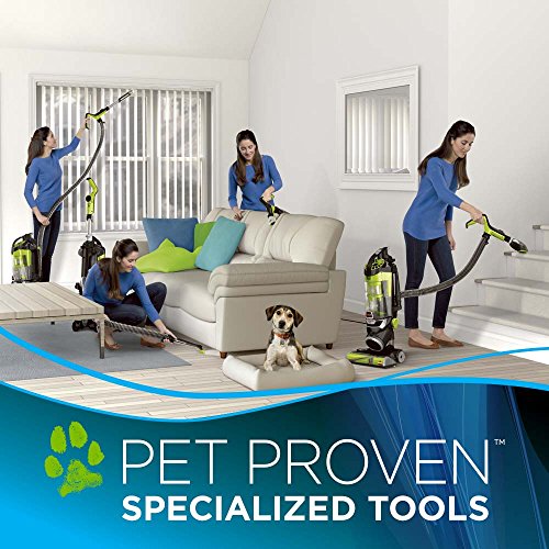 -. Feature : Tangle-free brush roll. Goodbye hair-wrap / Patented cyclonic pet-hair spooling system for a hands-free empty / Specialized pet tools with quick-release Wand to capture pet hair anywhere / Led-lit crevice tool uncovers Hidden dirt and pet turbo eraser tool removes embedded hair from carpets and upholstery / Smart seal allergen system with Febrile pet odor eliminator filter helps trap allergens inside the vacuum and eliminates pet odors as you vacuum
