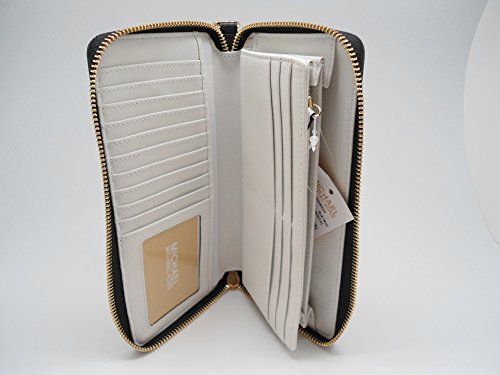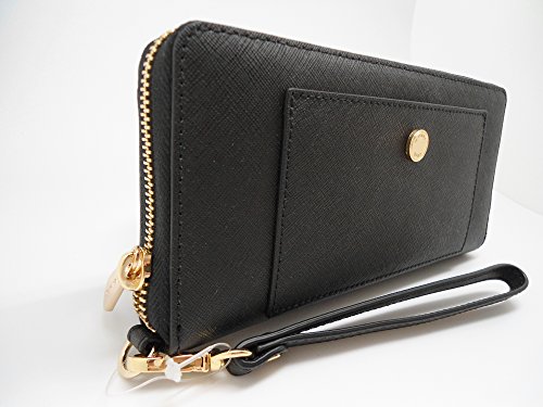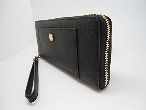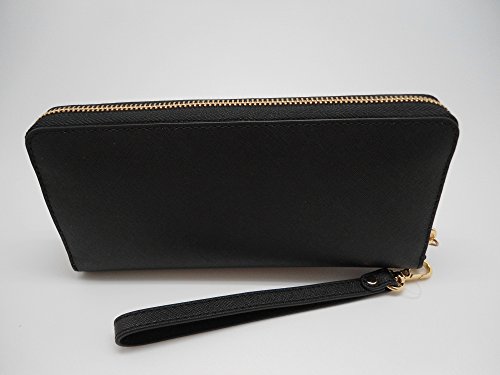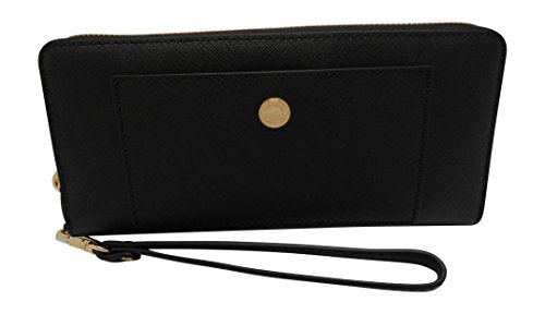 -. Title : GREENWICH POCKET CONTINENTAL LEATHER TRAVEL WALLET WRISTLET BLACK/WHITE