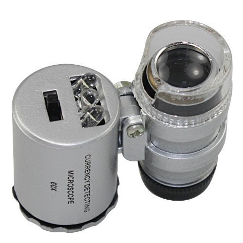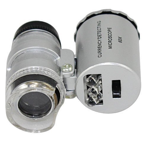 Skycoolwin 60x Handheld Pocket Microscope Loupe Jeweler Magnifier With LED Light Glass