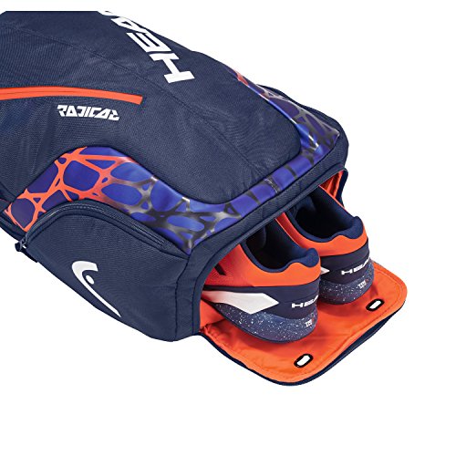 Studio : HEAD Publisher : HEAD Binding : Sports Product Description The Head Radical Tennis Backpack is designed with a blue and orange color to match the new Graphene Touch Radical line. This backpack has a padded section able to hold up to 2 racquets with ease, and comfortably away from the other compartments. There is a main compartment able to store items such as clothes, towels, string, or cans of balls. On the base of the backpack is an integrated shoe compartment, able to safely keep shoes or dirty clothes. On the front of the bag is a zippered pocket for small to medium sized belongings. There are 2 side zipper pockets able to hold smaller valuables, like your wallet or keys. Carry this like a traditional backpack with the two padded straps, or hold it from the top with the handle smoothly from the court. 0