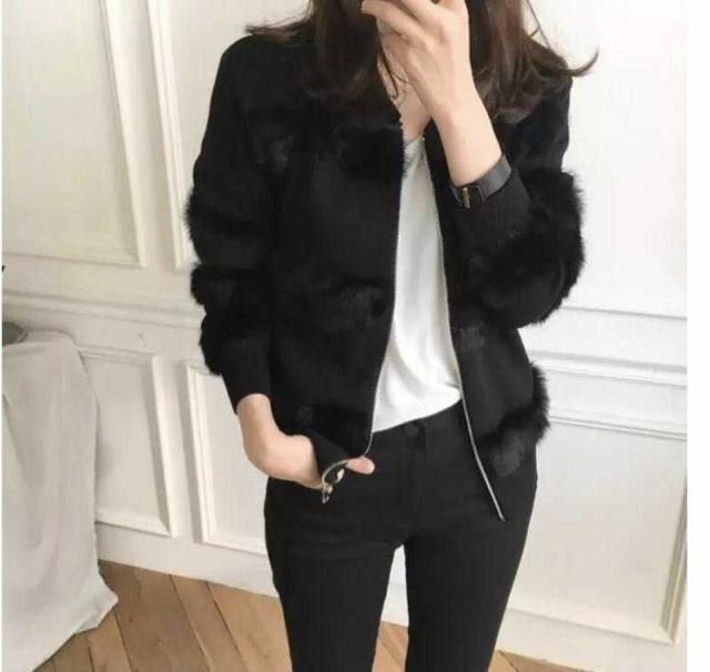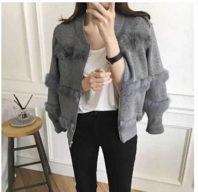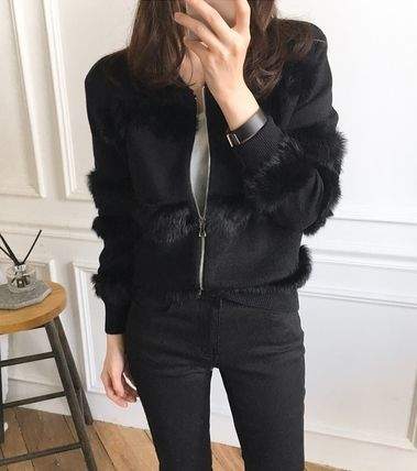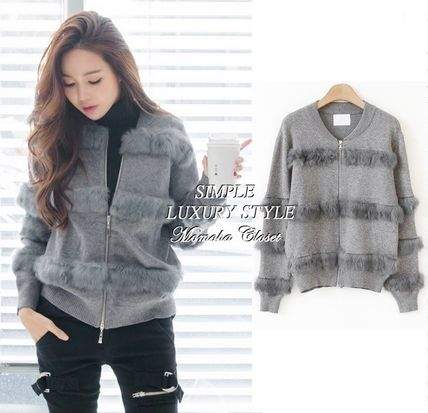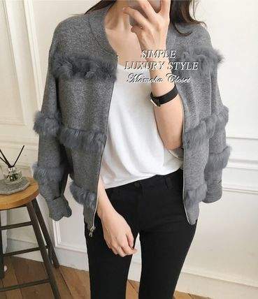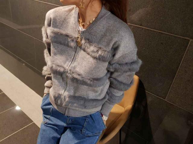 トレンド カーディガン ラビットファー ジップアップ ジャケット ウール混紡 スタイリッシュ 秋冬 上品 エレガント ワンサイズ