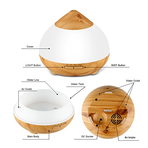 Aromatherapy Essential Oil Diffuser, Mclife 300ml Personal Cool Mist Humidifier Diffuser Wood Grain with 7 Color LED Lights for Home Bedroom Office...