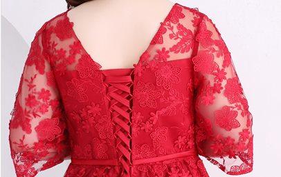 チュール レース 刺繍 透け感 七分丈 スパンコールドレス パーティードレス 体型カバー 結婚式 披露宴 二次会 ステージ カラードレス 大きいサイズ パーティー 調節できる コンサート 演奏会 2XL 3XL 4XL 5XL 6XL スピンドル レースアップ
