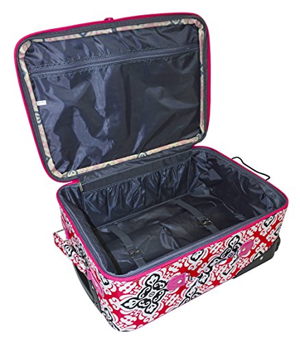 Product Description Don't get lost in a sea of black luggage at the airport! Stand out in style with this print boarding case! This piece of lightweight luggage is great for jetsetters and can be used for a quick, close by overnight staycation or for a weekend excursion to your favorite retreat. Its chic and fashionable design makes it a perfect choice for transporting gear for dance teams and cheer squads too! Easily glide through the TSA security checkpoint on inline skate wheels with your rolling suitcase for stress-free and efficient, stylish transport. This cute carry on features an interior zip compartment and elastic pocket to keep all your travel necessities organized. Never lose your boarding pass, ID, or other smaller items with two front exterior zipper compartments. This fabulous carry on is expandable just in case you need to return home with a few extra souvenirs. 0