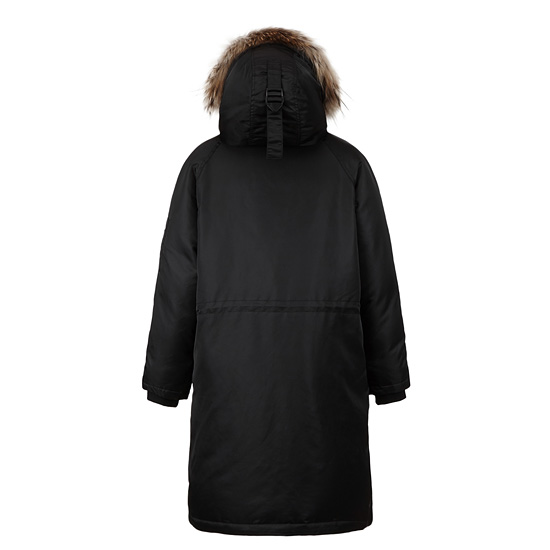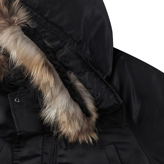 - 탈착 가능한 천연 퍼 트리밍 후드로 고급스러운 디테일 포인트.