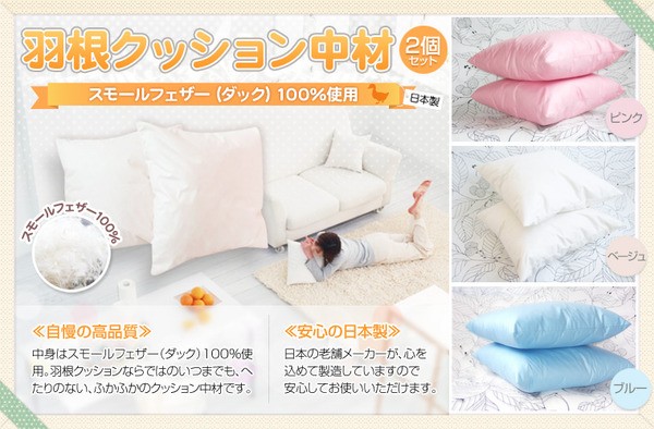 【商品名】羽根クッション 中材 ★ピンク 40X40cm 【2個セット】