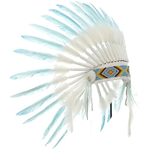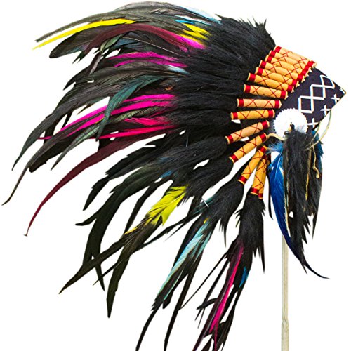 This kids size headdress is inspired by traditional War Bonnets worn by various Indian tribes, often called Indian Headdresses or Native American headdresses. It's made with REAL feathers and can be worn by boys or girls. Each headdress is handmade in Bali by artisans in their own homes who are exceptionally talented and take the utmost care to make each one unique and beautiful. Bead colors and patterns vary, making each one a work of art. Our customers love wearing these headpieces outdoors for games, festivals, photo shoots, plays, and just for fun! We ship to customers worldwide from the United States. We offer kids and adult size headdresses, in many colors and styles. Click up top on The Sounding Iron to see our whole shop! The Sounding Iron is not affiliated with any Native American groups or tribes. Our headdresses are designed and made by artisans in Bali, Indonesia and inspired by traditional Native American headdresses, and not meant to be interpreted as authentic "Indian products".Feature