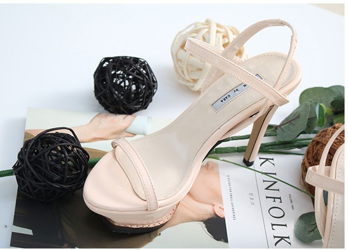 商品名:サンダル レディース ピンヒール プラットフォーム エナメル調 ストーム 2018 春 ファッション 靴 婦人靴