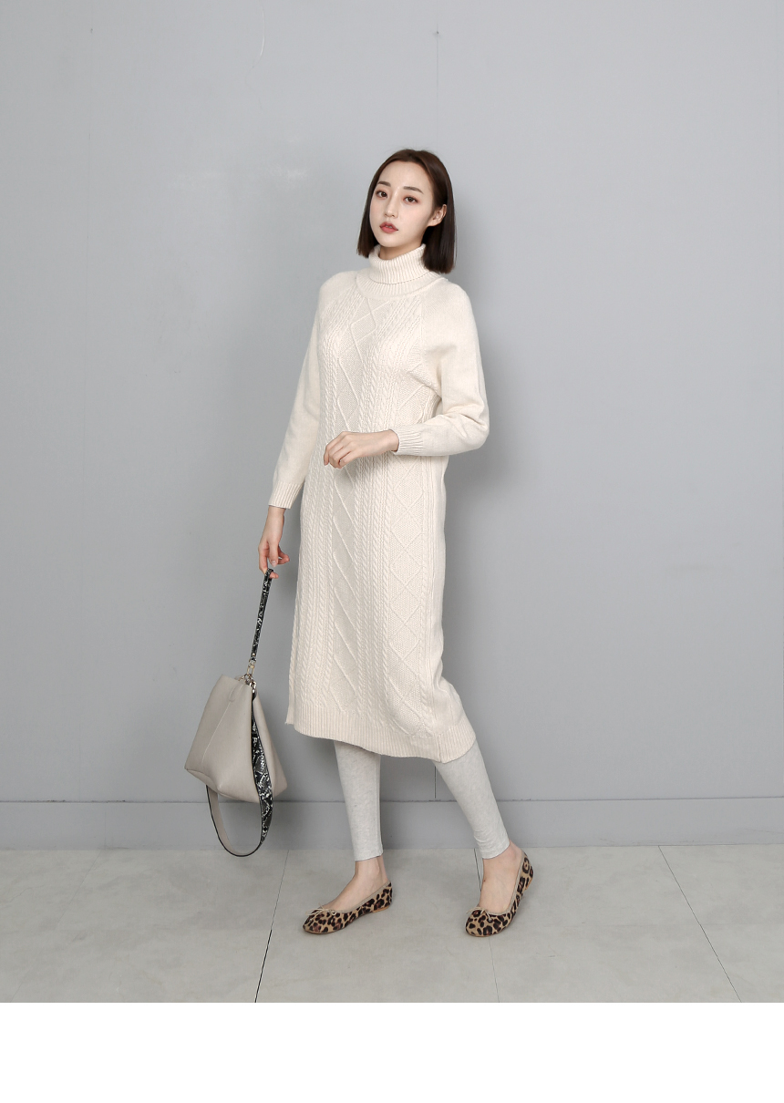 엔비 꽈배기 폴라 니트 롱원피스매트하고 탄탄한 꽈배기 짜임의