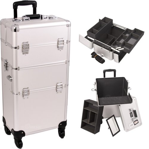 Sunrise I3261DTAB BlackDot4-Wheelprofessionalrollingaluminumcosmeticmakeupcraftstorageorganizercaseandeasy-Slide&Extendabletrayswithdividers-I3261, Black