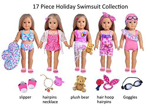 18 inch Doll Clothes Swim Accessories Set Fits American Girl, Our Generation, Journey Girls etc.
