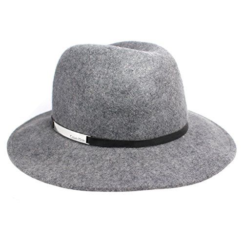 Calvin Klein Women's Wool Panama Fedora With Leather Trim, Gray (One Size)