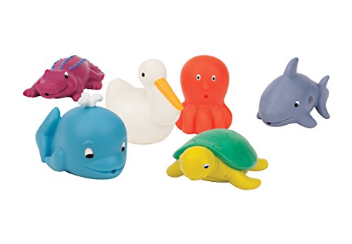 - This brightly colored set includes a whale, crocodile, shark, octopus, pelican, and turtle for imaginative bathtime play.