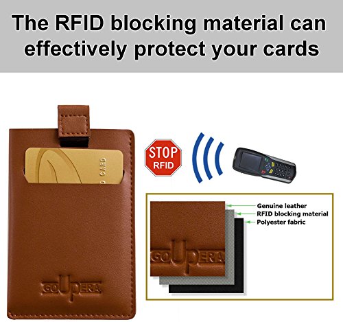 -. Binding : Apparel -. Brand : GoUpEra -. Color : Brown -. Department : mens -. EAN : 0768137501585 -. Feature : ✔ NO MORE BULKY WALLETS: The GoUpEra slim sleeve for cards is very compact and lightweight so that it can fit perfectly in your front pocket while still being spacious enough for all your essentials. The leather wallet has 2 slots, one large that can hold up to 12 cards and cash, and a small one so you can have easy access to the card you use the most. / ✔ ANTI-THEFT TECHNOLOGY: With this amazing slim wallet you can stay protected from identity thieves and RFID scanning! The card holder wallet gives you full RFID protection so that you will never have to worry about anyone invading your P.R.Ivacy and stealing your information! / ✔ QUALITY CONSTRUCTION AND MATERIALS: The minimal wallet is made with the best quality materials and with special attention to detail for maximum results and best performance. The wallet is made with genuine leather that is not only stylish but also very durable. It also has a convenient pull tab so you can have easy access to your cards at all times. / ✔ AMAZING GIFT IDEA: This incredibly practical and stylish wallet will make the most amazing gift for everyone in your life and for every occasion. Get this card holder for your father on father's day, your best friend on her birthday or for your husband for Christmas and rest assured that they will love it! / ✔ ORDER WITH CONFIDENCE: We are certain that you will love our slim card sleeve as much as we do! Your satisfaction is our number one P.R.Iority and this is why we back all of our products with a 100% money back guarantee. So if for any reason you are not completely satisfied with our product, we will give you a full refund - just let us know! -. IsAdultProduct : 0 -. Label : GoUpEra -. Manufacturer : GoUpEra -. MPN : 4331220687 -. PartNumber : 4331220687 -. ProductGroup : Apparel -. ProductTypeName : ACCESSORY -. Publisher : GoUpEra -. Size : Length - 4.1; Width - 3; -. Studio : GoUpEra -. Title : Front Pocket Card Holder for Men by GoUpEra - Minimalist Leather Wallet for Credit Cards - Slim Card Sleeve Wallet with RFID Blocking -. UPC : 768137501585