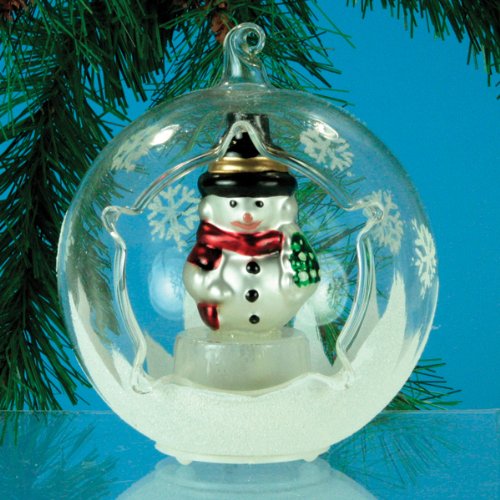 LED Snowman Ornament - Glass Globe Ornament with Lighted Snowman Inside - LED Glass Ornaments