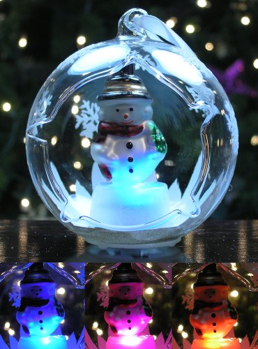 - LED color-changing glass Christmas ornament with snowman