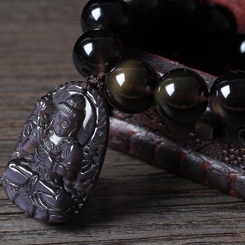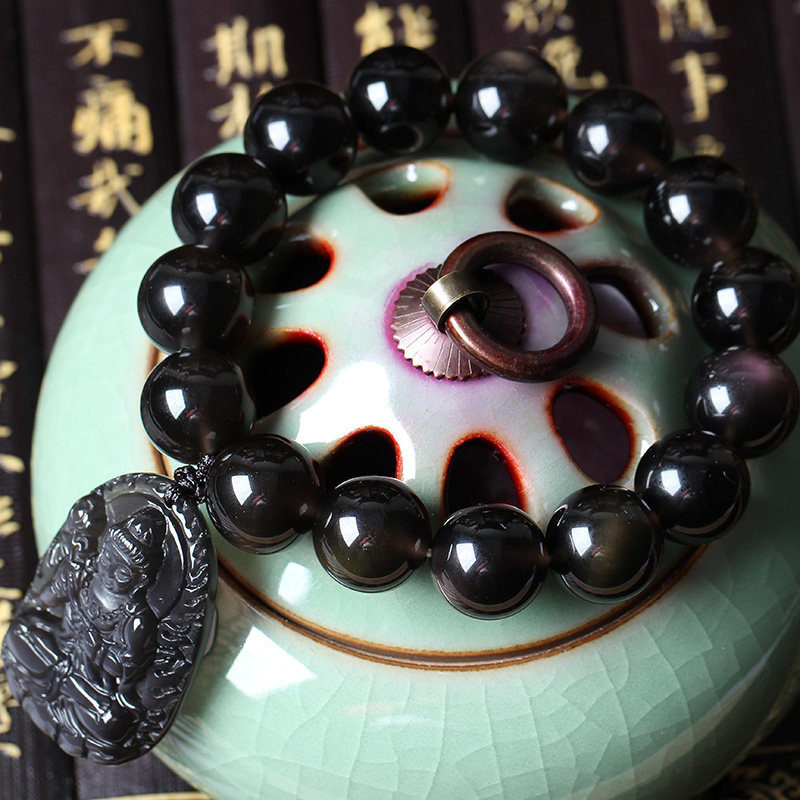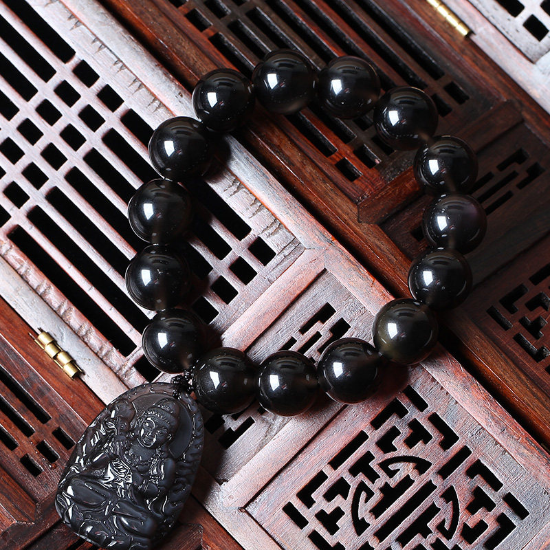 开光冰种彩虹眼黑曜石十二生肖属马大势至菩萨守护神本命佛手链