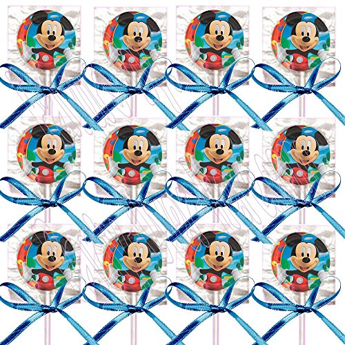 Mickey Mouse Party Favors Supplies Decorations GENERIC Lollipops w/ Blue Bows Favors -12 pcs