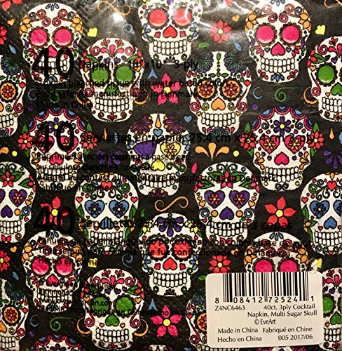 Cypress Home Cocktail Beverage Paper Napkins, Multi Sugar Skull, 40 ct