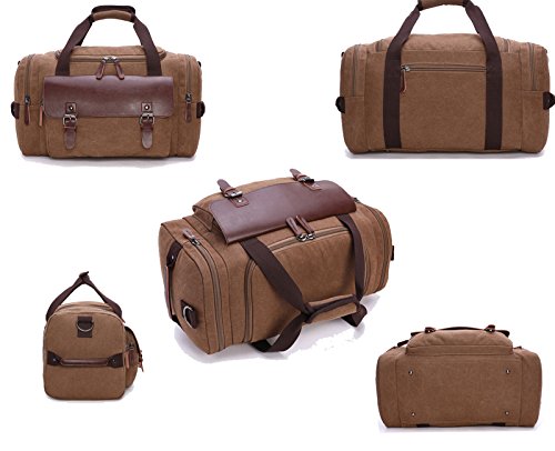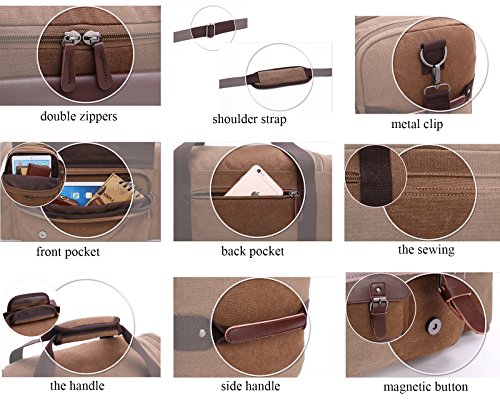 -. Feature : SUPERIOR QUALITY:Every bags are produced by our own factory,we pay more attention to every espect details,the stitching,the zippers and the straps,to reach extreme achievement contracted in noble quality. / ARBITRARILY CARRYING:Comes with adjustable and removable shoulder strap,you can carry it in the way you like,handbag or shoulder bag. / MATERIAL:High Quality Tear Resistant Durable Cotton Canvas and Waterproof Leather Accents Material,the Fabric Feels Soft and It Is Capable of Being Washed Too. / ORGANIZATION:Incredibly Compact Size(18.1*9.9*9.1 inch)Unique Bottom Design Allows Your Bag Roomly,Lots of Pockets, of Different Sizes, for Storing Items That You Need to Find Quickly.With It,You Can Make Your Stuff More Organized. / MULTIPURPOSE:For Gym, Sports, Travel, Lage, on a Business Trip, Hiking, Camping,Daily Using,House-moving or Emergencies,Checked Bag,Weekend Bag,Airline Bag,Overnight bag and Carry-on Bag.