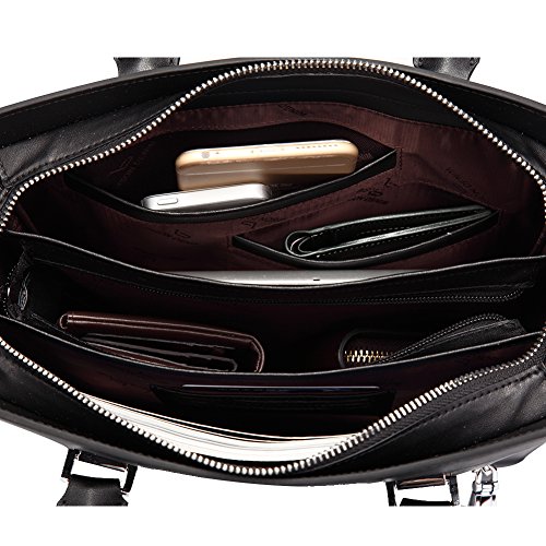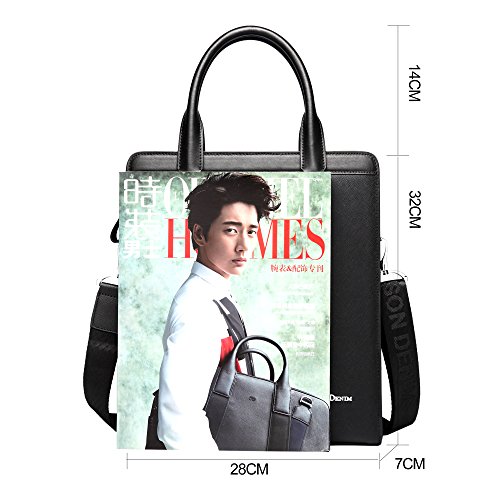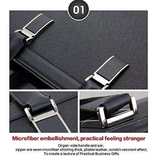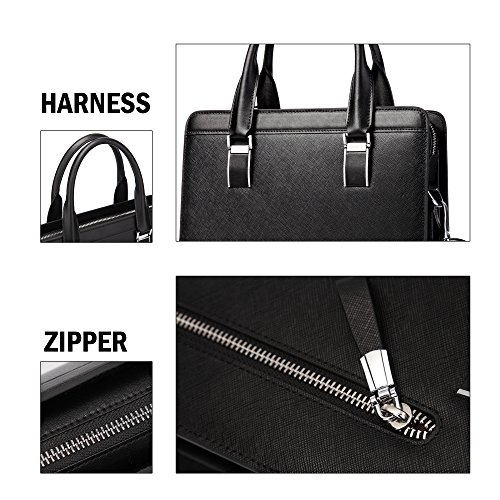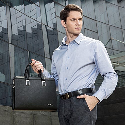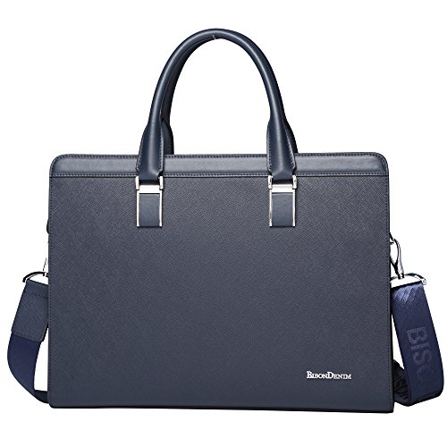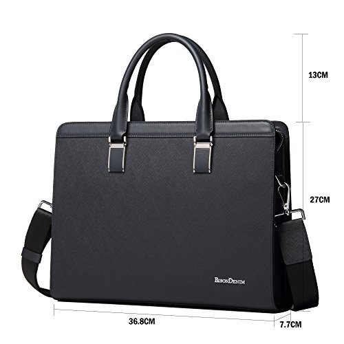 -. Feature : Material: The briefcase bag is made of high quality genuine cow leather with durable polyester lining. The hardware parts are made of quality material; these make the leather handbags more luxurious. / Size: (L x B x H) 36.8 cm x 7.7 cm x 27 cm. / Design: This briefcase bag contains 1 big inner compartment, 1 cell phone pocket, 1 inner zipper pocket, 2 pockets outside, one of with is zipper closure and another is magnetic snap closure. Secure and stylish single gusset construction expands for greater carrying capacity. The laptop bag easily holds a 14 inch laptop, iPad, iPhone, A4 file and other business things. / Color: The bag is available in black and blue color. / Classic style: The plain design will perfectly suit for most occasion and dressing. With a sleek, fashionable design, the bag ensures that you travel in style! It also features an adjustable and detachable shoulder strap, providing versatility and comfort. For added convenience, it fits in all large overhead bins.