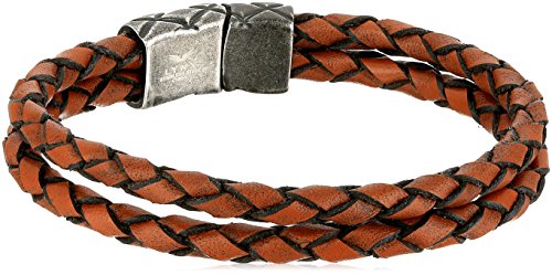 Men's Stainless Steel and Brown Leather Bracelet