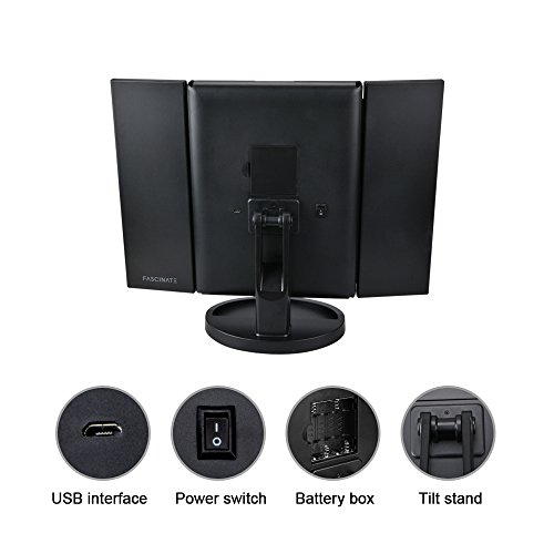 ❤Excellent Power Supply Mode❤ USB chargeable or 4pcs AAA battery powered (battery not included, usb wire included) Power on /off button located on the back of mirror. Please note the mirror can’t store power itself.