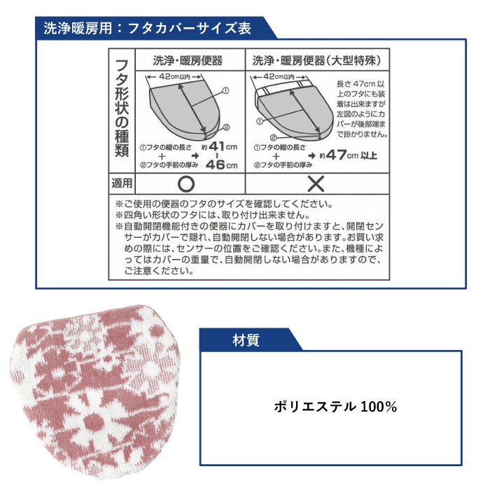 可愛い柄のトイレフタカバーです! ■特徴/仕様 洗浄暖房タイプのトイレフタカバーとしてお使い頂けます。 上手なお手入れ方法 ●お洗濯の際、ぬるま湯でなるべく中性洗剤を使用して下さい。 ●お洗濯の際、最初の2~3回はムダ毛が抜けたり 多少脱色することがありますので、他の洗濯物と別にお洗い下さい。 ●お洗濯の際、手洗いするか、 洗濯ネットをお使い下さい。 ●丸洗いしたあと脱水機にかけ、陰干しして下さい。 ●塩素系漂白剤は、ご使用しないで下さい。