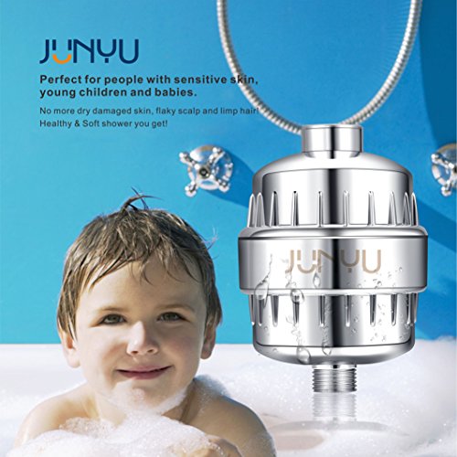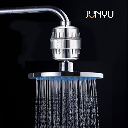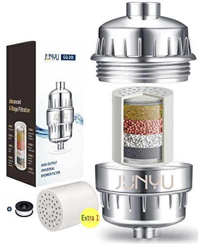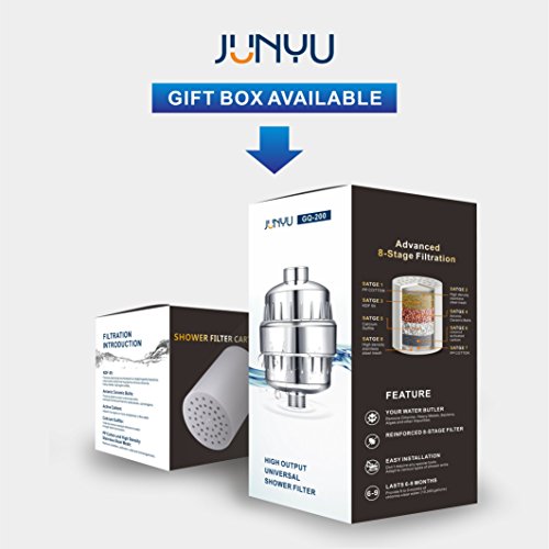 JUNYU 8-Stage High Output Shower Filter, 2 Replaceable Filter Cartridges - Removes Chlorine and Flouride and Harmful Substances From Your Water. Free Teflon Tape Provided - Chrome