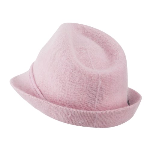 -. Title : Angora Fedora with Belt Buckle Accent - Pink