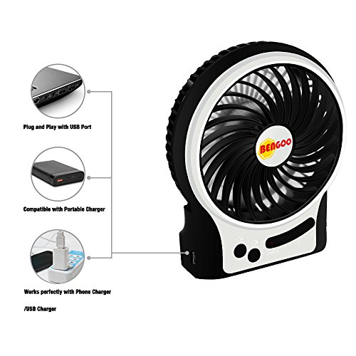 -. Binding : Wireless Phone Accessory -. Brand : Bengoo -. Color : Black&White -. EAN : 0601490945484 -. Feature : Three-speed design provides you more choices in different temperature environment. / The built-in blue light and the side emergency light can be very useful after you turn off the lights in the night or when you are camping in the summer. / The charging cable is the same as Android phone USB cable. You can use or charge the fan with your smartphone charger or plug into your computer USB interface. / Multi-usage scenario:You can use this in your office or at home with the power from computers. You can also bring this portable fan for travelling in summer to help you cool down when it is hot outside. / Excellent battery life:The included battery can last up to 6 hours(depends on the working speed). -. Label : Bengoo Inc. -. Manufacturer : Bengoo Inc. -. Model : BENMF001B -. MPN : BENMF001B -. PackageQuantity : 1 -. PartNumber : BENMF001B -. ProductGroup : Wireless -. ProductTypeName : WIRELESS_ACCESSORY -. Publisher : Bengoo Inc. -. Studio : Bengoo Inc. -. Title : Fan Bengoo Portable Fan USB Mini Desktop Desk Table Electric Rechargeable Fan for laptop room office outdoor travel -. UPC : 601490945484