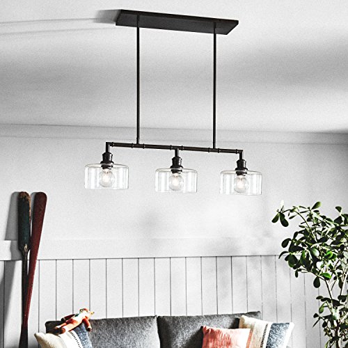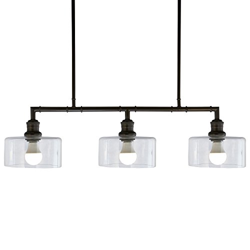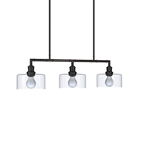 An Amazon brand - This smartly designed industrial pendant chandelier will add a sophisticated twist to a modern kitchen, dining room or bar area. Black metal is paired with three clear glass shades.Feature