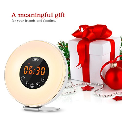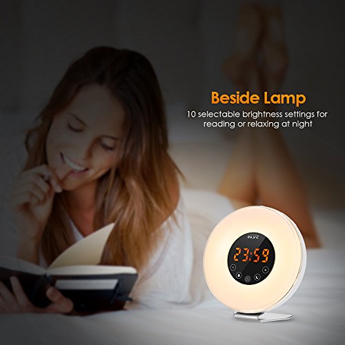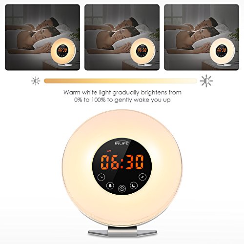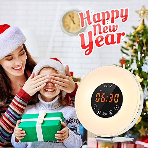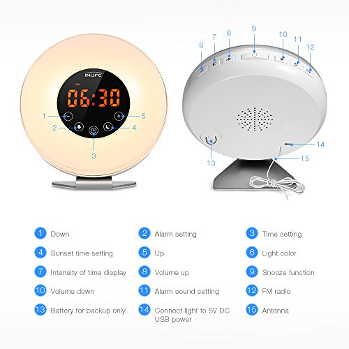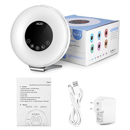 - Sunrise simulation wake-up light wakes you up gently - Natural sounds alarm clock, with snooze function - Sunset simulation sleep light can be selected 15/30/60 minutes period - Bedside lamp with 10 brightness settings - Brightness of time display can be adjusted from bright, dim, off - LED time display in 12 or 24 hours format Specifications: - Material: Acrylic, ABS - Lumen: 70LM - Input: 100-240VAC - Speaker: 8Ω 2W - Light brightness: 140Lux Package included 1 x Wake Up Light Sunrise Alarm Clock 1 x USB Cable 1 x Power Adapter 1 x User Manual Warranty 30-day money back and 12-month worry-free. Professional and friendly customer service, buy with confidence. Product Size(L x W x H): 6.2?x3.1 x?6.6?inches Product weight: 1.1?lb Package Size(L x W x H): 7.2?x 6.8?x 4.1?inches Package weight: 1.5?lb? 0 |