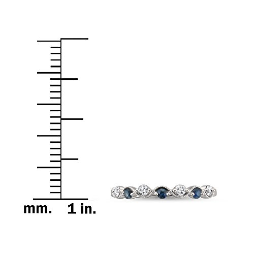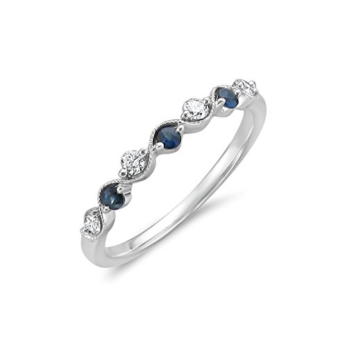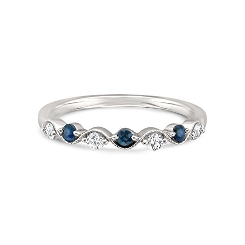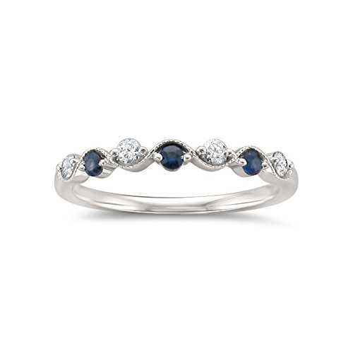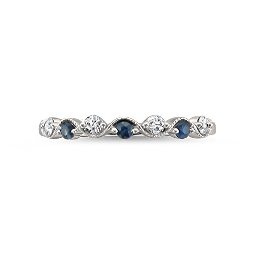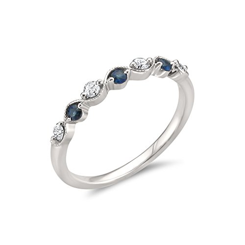 -. Title : 14k White Gold 7-Stone Round Diamond & Blue Sapphire Wedding Band Ring (1/4 cttw, I-J, I2)