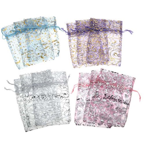 Beadaholique 12 Count Organza Drawstring Gift Bags, 4 by 6-Inch, Assorted Silver and Gold