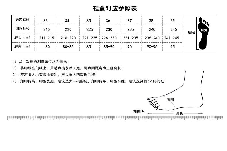This shoes is standard size.If your foot are chubby type,you may choose one size bigger.Please measure and choose carefully before place the order,NOT exchange are allowed !