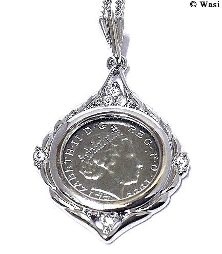 -. Title : mn3 REAL-COIN PENDANT(1PENNY硬貨) Q,ELIZABETH 選べる8種(ELEGANT×SILVER色)ZIRCONIA 高級感 喜平CHAIN (si)