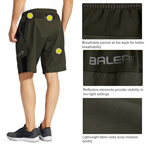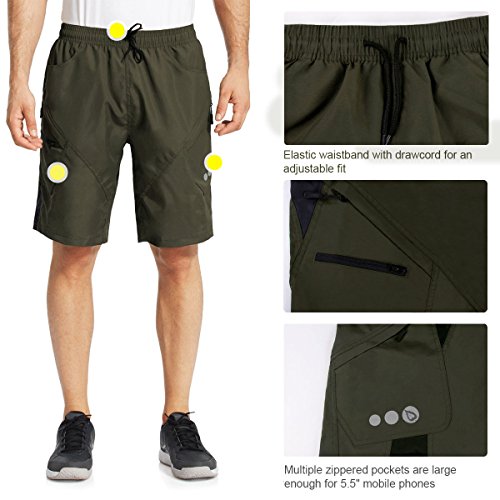 Title : Baleaf Men's 3D Padded Mountain Bike Cycling Baggy Shorts - Removable Mesh Linner Underwear Army Green Size L