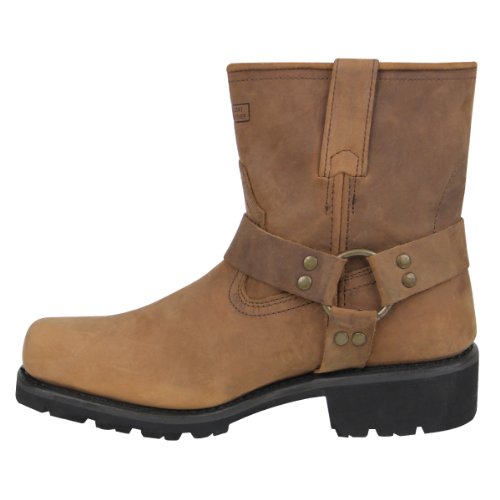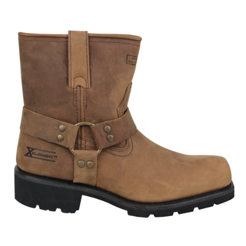 Studio : Xelement Footwear Publisher : Xelement Footwear Product Description Mens classic short harness motorcycle boots featuring full grain crazy horse brown leather (hard to find color), short classic harness design (7 inch upper height), an approximate 2 inch heel, oil resistant lug sole, and Good Year Welt Construction for long durable wear (resole-able, better comfort when wore in). Buy with confidence today and save from the webs highest rated online leather store. We offer a 30 Day Exchange or Return Guarantee. 0