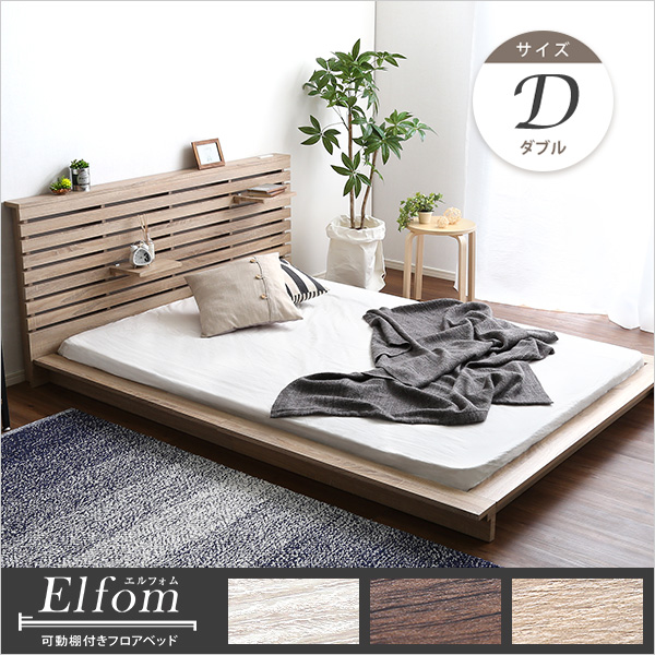●スリムなヘッドボードには2枚の可動棚をお好みの位置に配置可能!