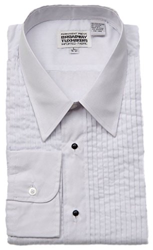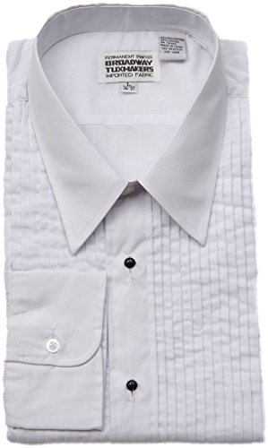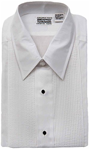 Binding : Apparel Product Description This is a men's, white tuxedo shirt with Lay Down Collar. It includes both black studs and regular buttons. Button cuffs can also use optional cuff links. This shirt is easy care permanent press, 35% cotton/65% polyester. This is the perfect shirt for a prom, wedding, cruise, or any other formal event. 0