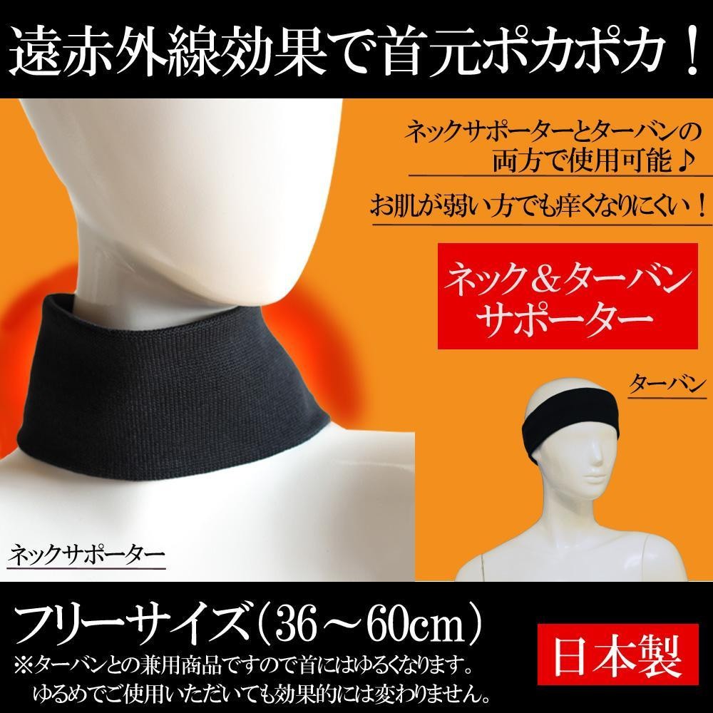 | ターバンとしても使える、遠赤効果を備えたネックサポーター。 |