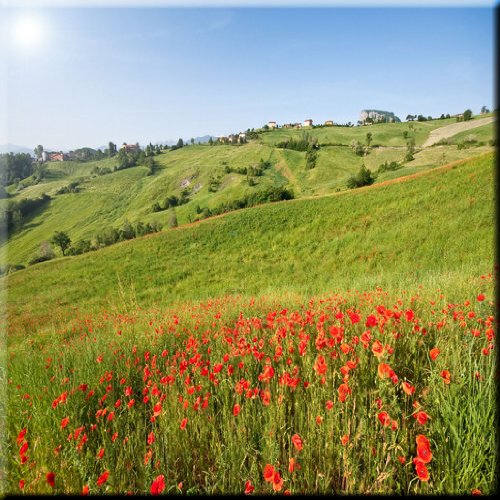 Rikki Knight RK-12intilec-8955 12" X 12" Tuscan Landscape with Poppy Field Design Ceramic Art Tile