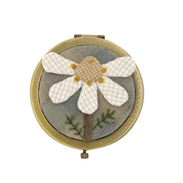 | 人気のキルト作家(南久美子)によるかわいいコンパクトミラーのキットです。開くと片面は拡大鏡の両面ミラーです。 |