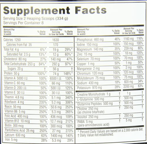 High Calorie Weight Gainer: 1,250 Calories per 2-Scoop Serving