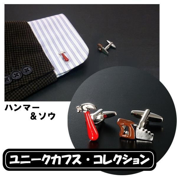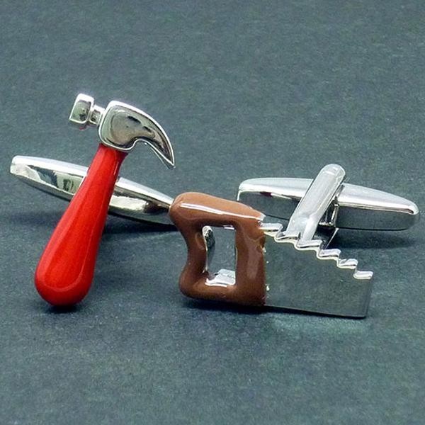 | ハンマー&ソウの形のカフスボタンです。袖口をキラキラお洒落に飾って、さりげなくこだわってみませんか?専用のBOXに入れてのお届けになりますので、プレゼントにもぴったりです。 |